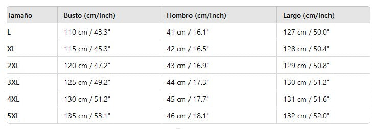 - Sizes: M, L, XL, 2XL, 3XL, 4XL, 5XL