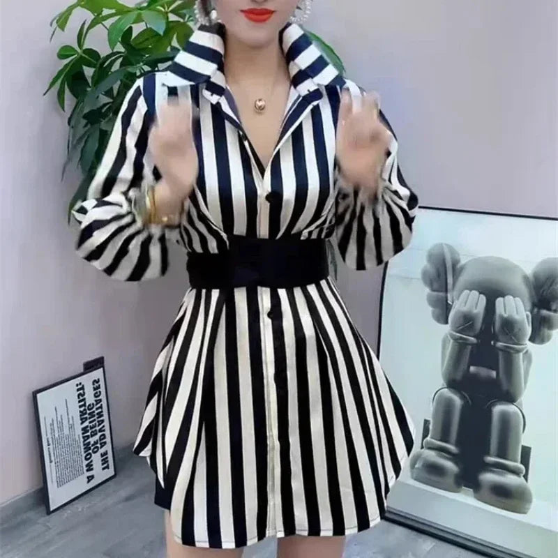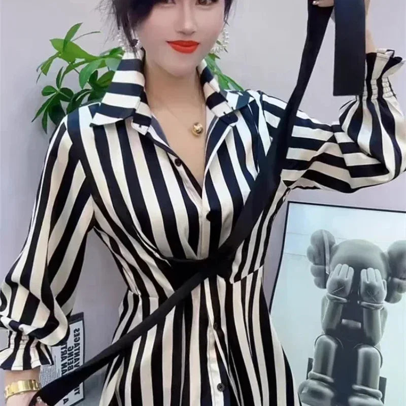 Descubre la elegancia casual de nuestra Blusa Larga de Rayas con un toque coreano. Esta prenda de alta calidad es ideal para la temporada de otoño/invierno, combinando un diseño clásico de rayas con un ajuste moderno y ligeramente elástico. Perfecta para el día a día, ya sea en la oficina o en salidas casuales.