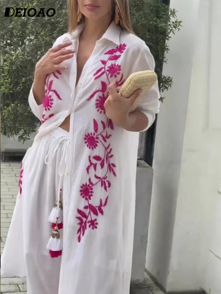 Detalles elegantes: Estampado floral y diseño de pantalones de pierna ancha para un toque único.
