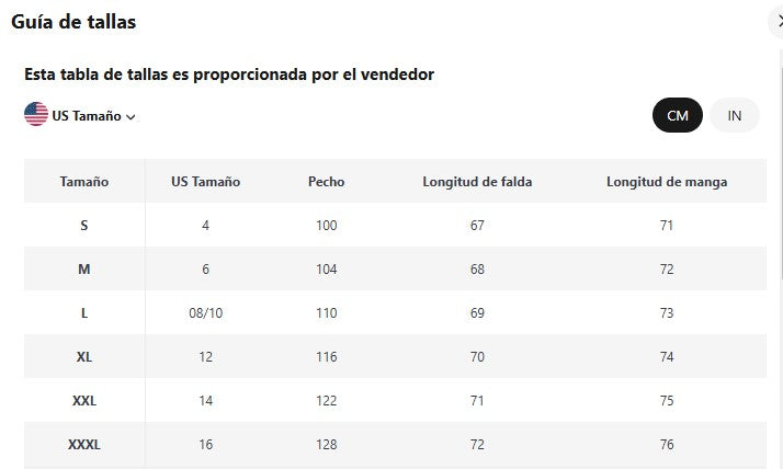 - Largo del Vestido: Hasta la mitad de la pantorrilla.