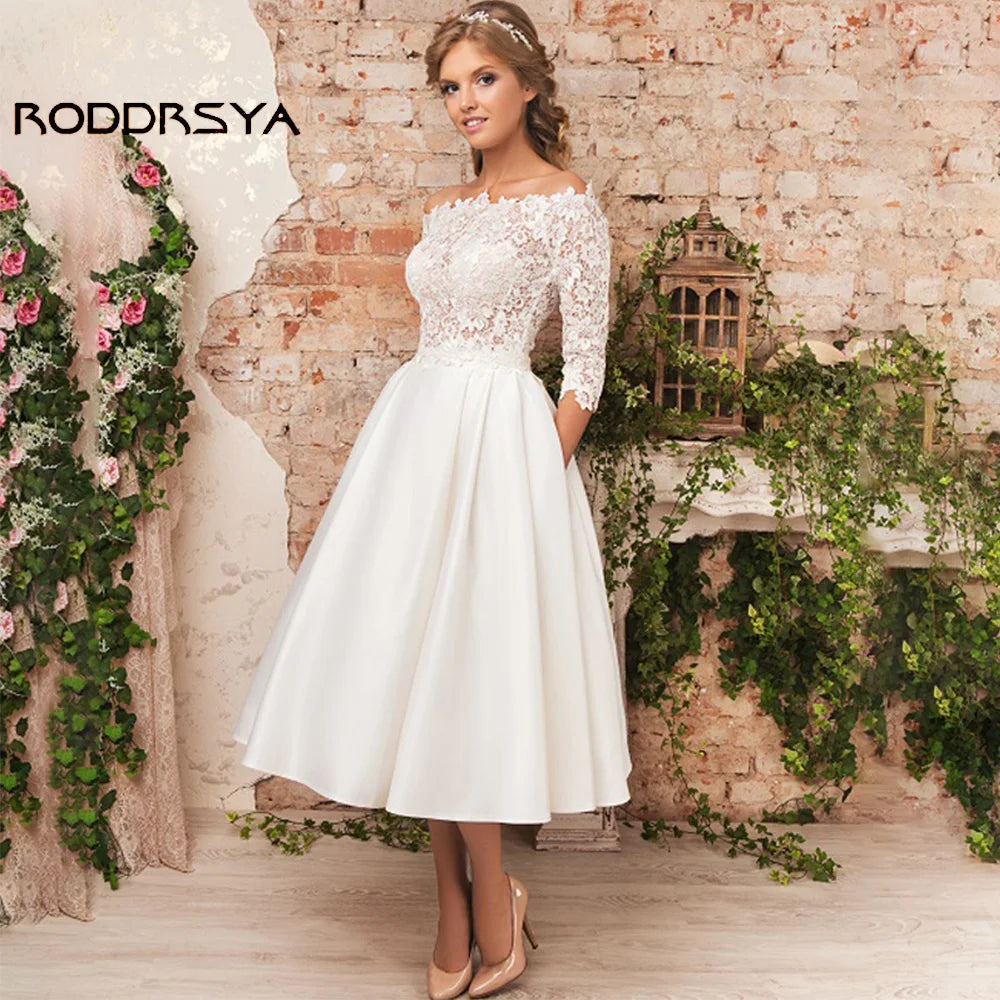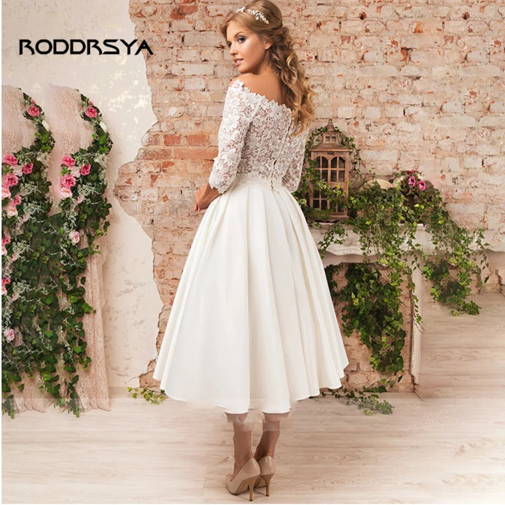 Este elegante vestido de novia vintage es ideal para aquellas novias que buscan un estilo clásico y atemporal en su gran día. Con un escote alto y mangas largas, este vestido combina la elegancia del encaje con la suavidad del satén, creando un equilibrio perfecto entre sofisticación y romanticismo. La silueta en línea A y el largo tea-length aportan un aire de delicadeza y comodidad, perfecto para bodas civiles o ceremonias íntimas.