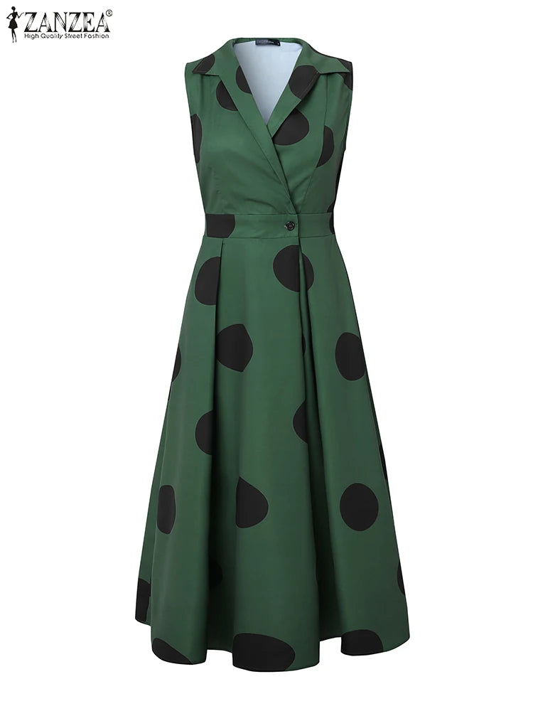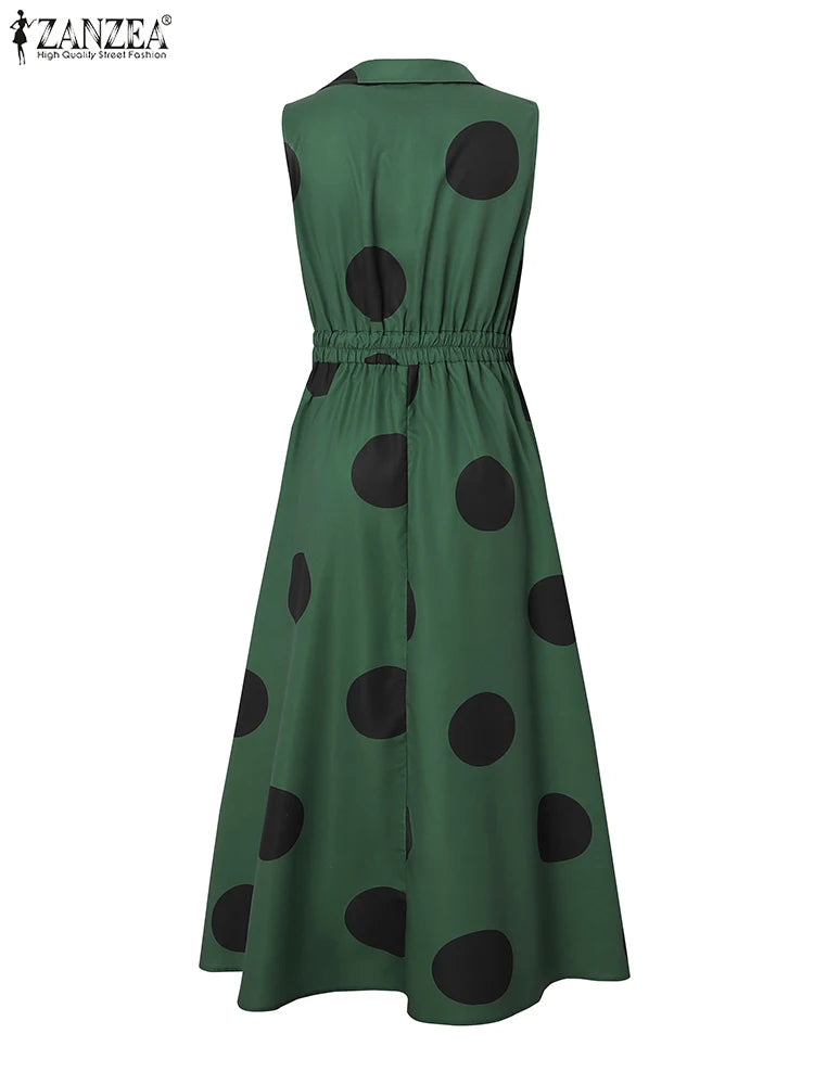 Vestido Largo Elegante de Lunares con Cuello Solapa- Primavera/Verano 2025