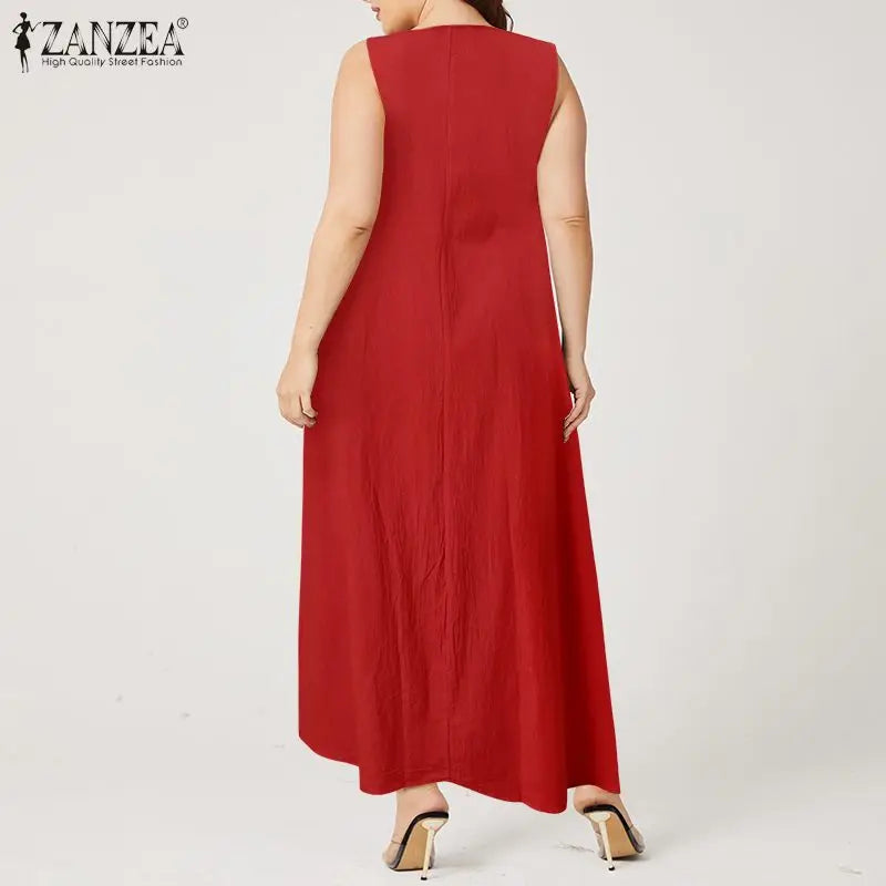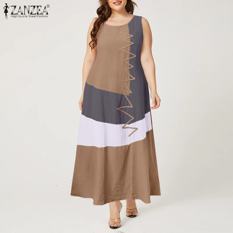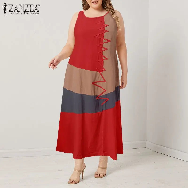 Descubre la comodidad y el estilo bohemio con este Vestido Maxi Kaftan, ideal para un look casual y fresco en verano. Este vestido sin mangas, hecho de 100% algodón, es perfecto para cualquier ocasión, desde días de playa hasta fiestas al aire libre. Con un diseño de costuras en colores llamativos y una silueta en línea A, este vestido ofrece un ajuste relajado y favorecedor para todas las figuras. Disponible en una variedad de colores como blanco, caqui, gris y rojo anaranjado, y en tallas grandes de L a 5XL, es la elección perfecta para la moda veraniega.