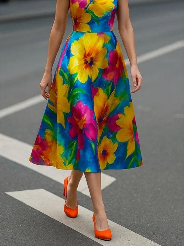 Vestido Midi Estilo Británico – Elegancia Floral para el Verano