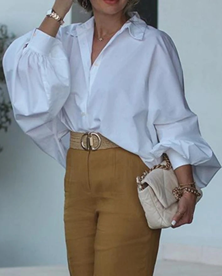 Descubre esta blusa de algodón 100% con un diseño de manga larga tipo farol y un corte holgado, ideal para un estilo casual y sofisticado. Perfecta para mujeres con buen gusto que buscan versatilidad y comodidad en su look diario.