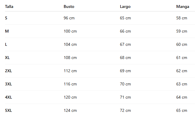 📏 Tabla de Tallas (cm)