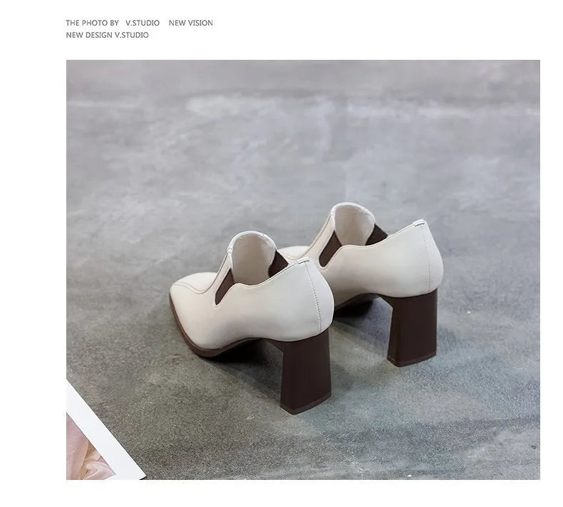 Un modelo de botines que combina un diseño clásico con detalles modernos. Su punta cuadrada y tacón ancho aportan una estética actual, ideal para complementar looks de oficina o conjuntos casuales.