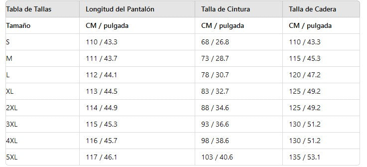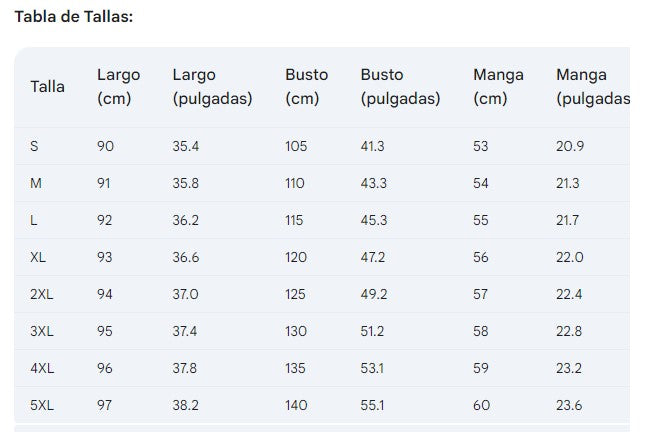 📏 Tabla de Tallas