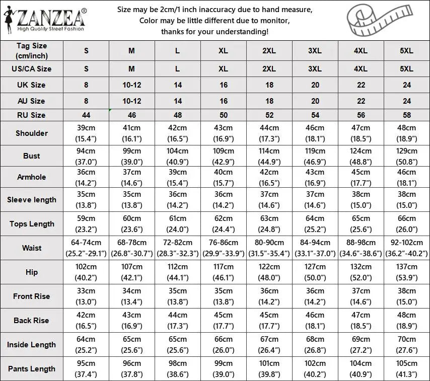 · Revisar cuidadosamente la tabla de medidas antes de realizar el pedido
