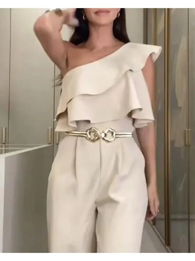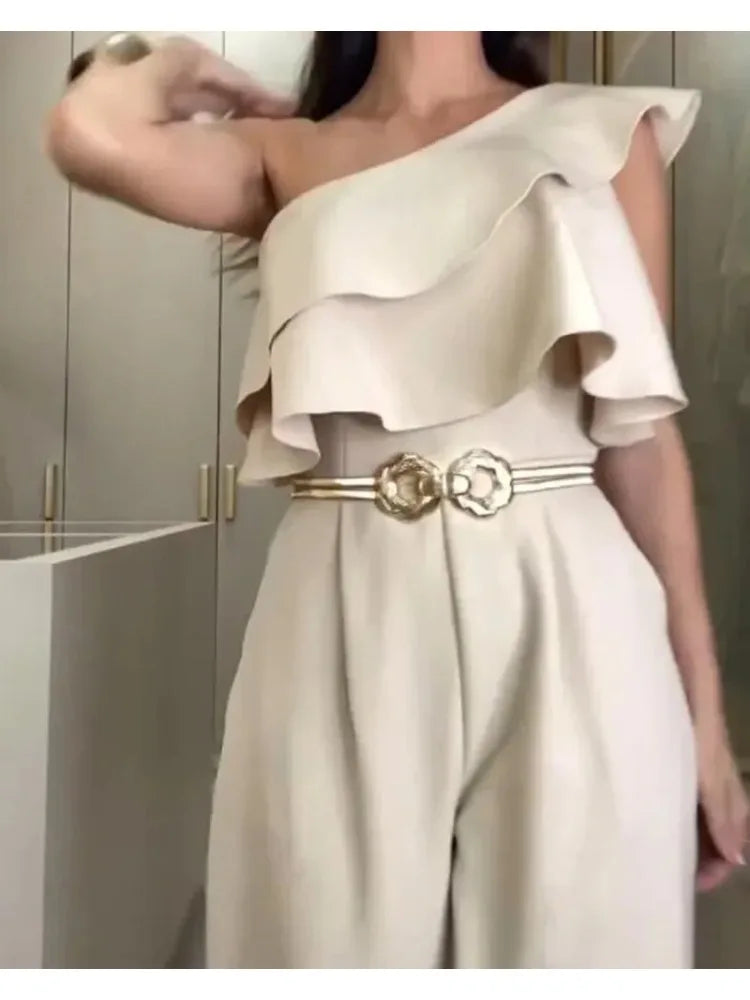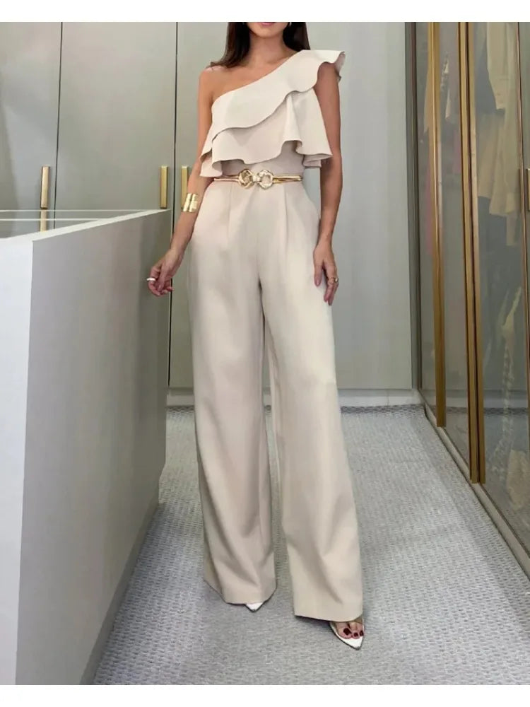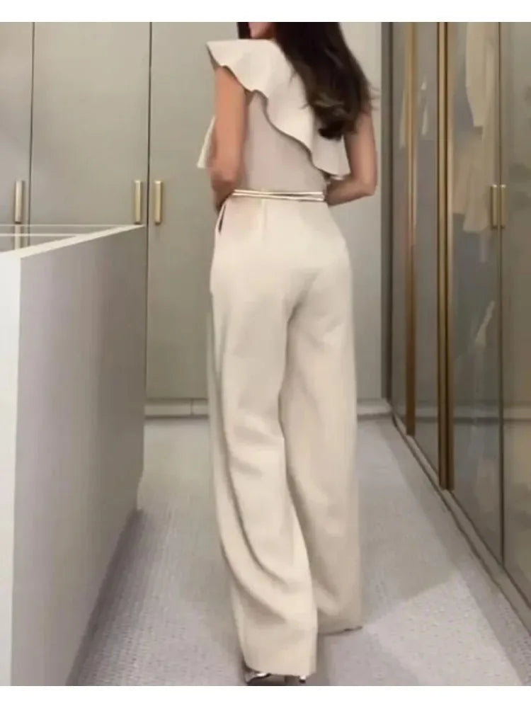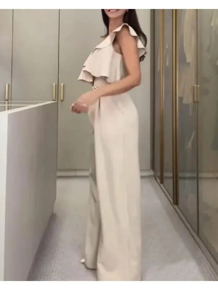 Jumpsuit Elegante de Pierna Ancha con Volantes