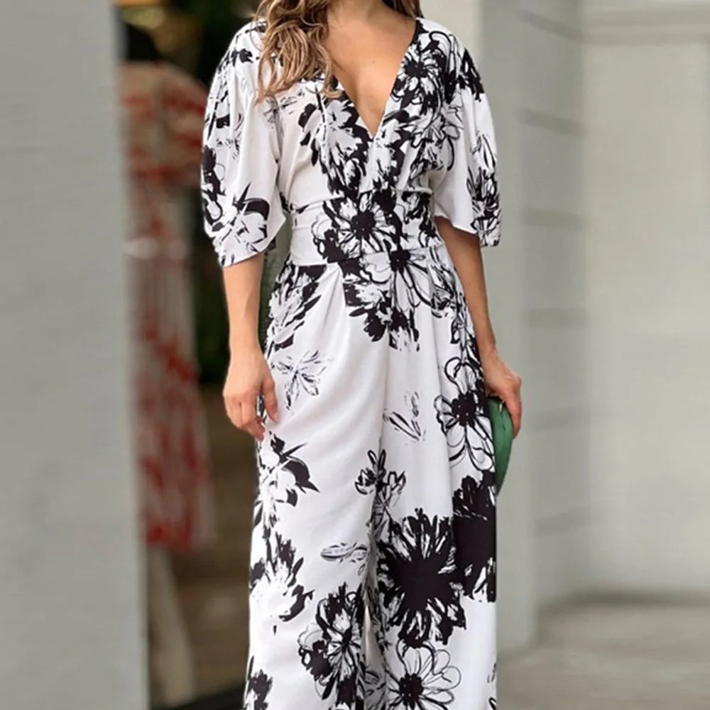 Jumpsuit Estampado con Escote en V y Manga Dolman