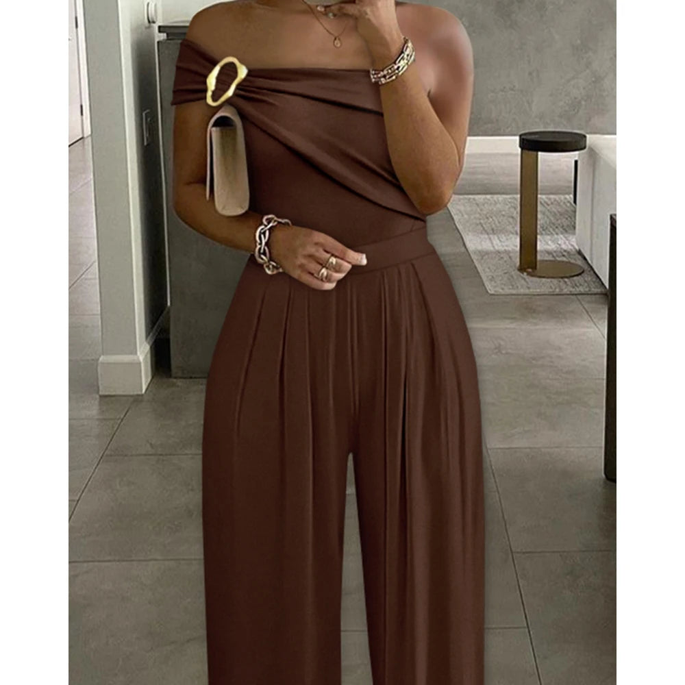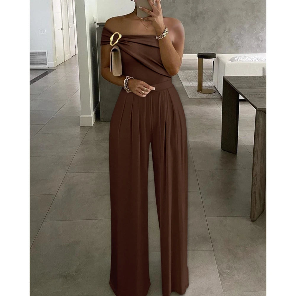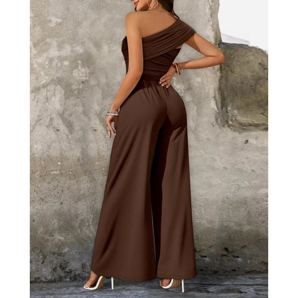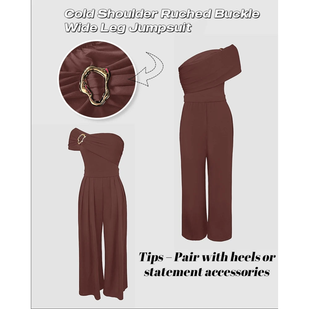 Diseño sofisticado que combina estilo y comodidad. Este mono destaca por su tirante único con detalle de hebilla, fruncido lateral que favorece la silueta y pantalón de pierna ancha para un movimiento fluido. Ideal para eventos, cenas o fiestas donde quieras lucir elegante y segura.