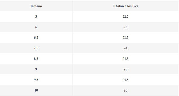 Encuentra la "Talla" en la tabla de tallas usando la longitud de tu pie.