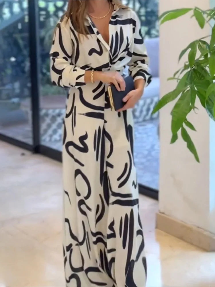 Detalles únicos: Estampado moderno y pantalones wide-leg para un toque sofisticado.
